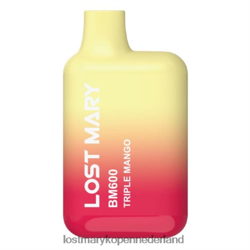 de lost mary bm600 triple mango is een aantrekkelijk aanpasbare vape die tot 600 trekjes kan maken. het apparaat is verkrijgbaar in een reeks van 24 verrukkelijke smaken die 20 mg/ml nic-zouten bevatten.
