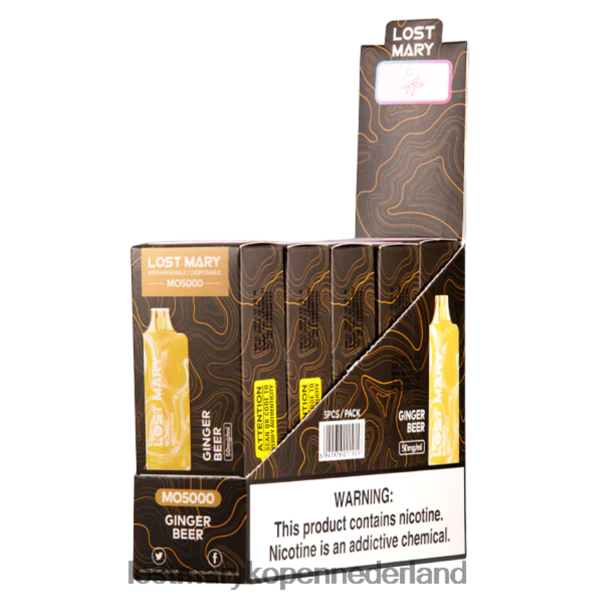 het gemberbier lost mary mo5000 maakt gebruik van een unieke citroen- en gemberbier vape-sapsmaak die bij het uitademen een licht ijs toevoegt.