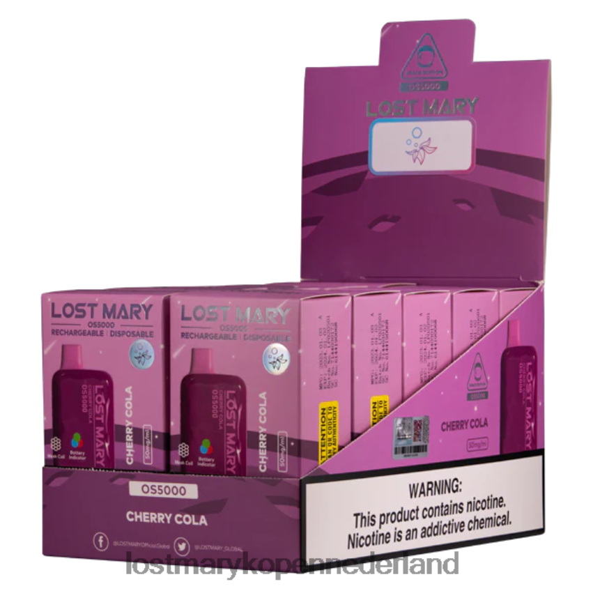 smaak: de kersencola Lost Mary Vape combineert een traditionele cola-verfrissingssmaak met een vleugje kersensmaak.