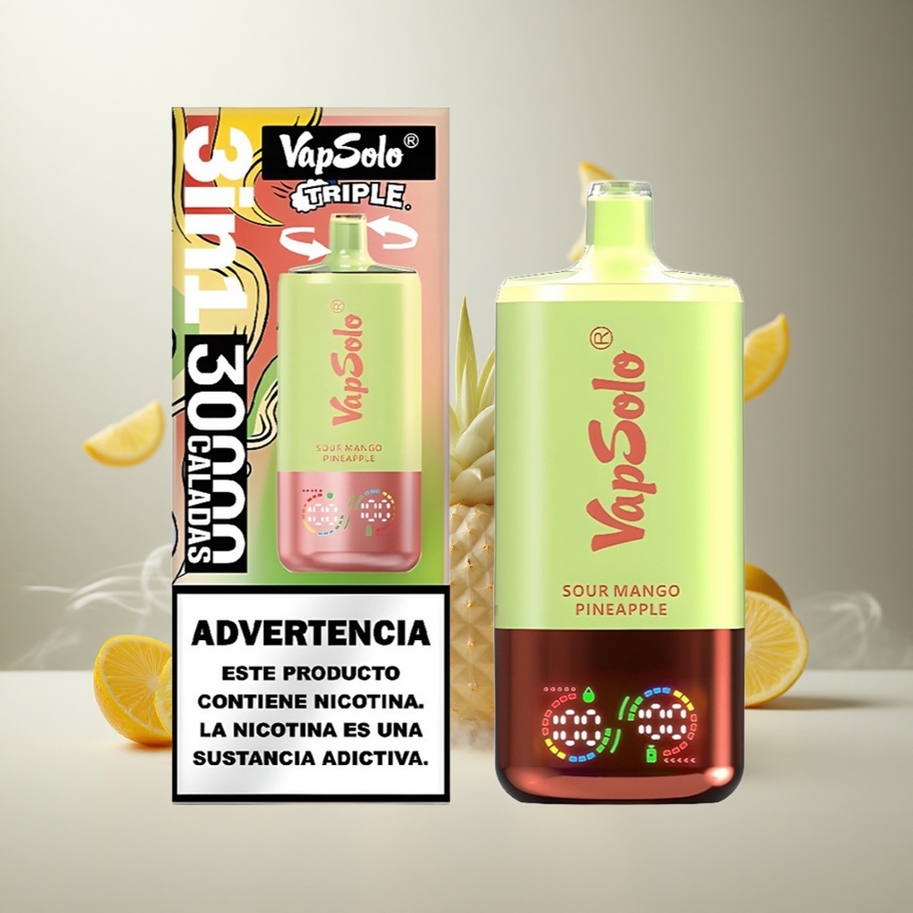 VapSolo Triple 30000 Puffs Wegwerp Vape Zure Mango Ananas 40ml E-Liquid Netherlands vape wholesale